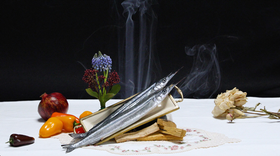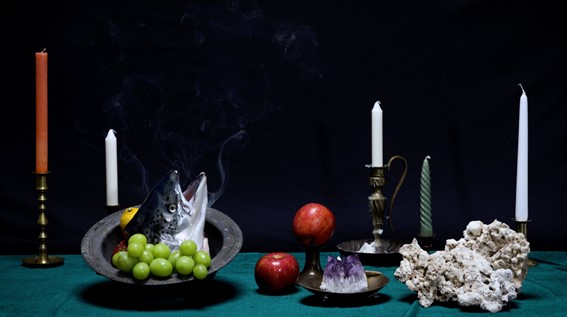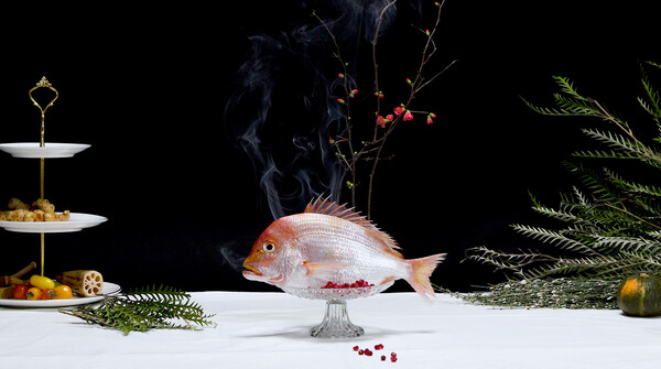 이는 조리된 음식에서 나오는 증기처럼 보이기도 하지만, 도미의 선명한 생기가 차가운 성질을 띠면서 격차를 드러낸다. 이는 식탁 위의 동물에 대한 딜레마를 보여주는 것”이라고 설명한다.