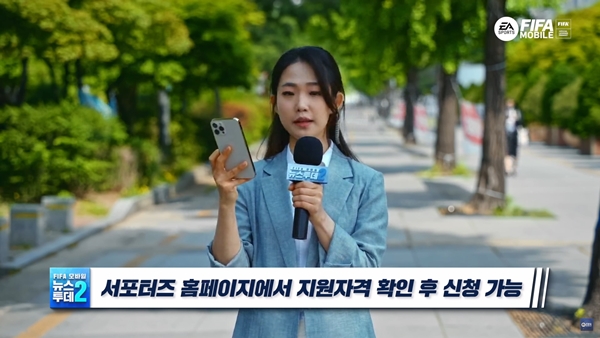 구체적인 혜택으로는 피파 모바일 콘텐츠 출연, 개인 채널 홍보와 함께 피파 모바일을 깊이 즐기고 이해할 수 있도록 매달 30만 원 FV, TP 등이 포함된 서포터즈 전용 팩과 KFA 주관 경기 티켓 제공 및 100만 원 상댕의 방송 장비까지 지원될 예정이다.