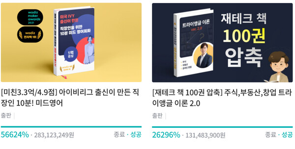 전자책으로 수 억을 버는 작가들 등장하고 있다. 억 단위의 전자책이 쏟아져 나오는 곳은 크라우드 펀딩 플랫폼 와디즈다. 영어, 재테크, N잡 등 현대인들의 관심사인 주제들이 전자책으로 만들어지면서 수천명의 독자들을 만나고 있다.