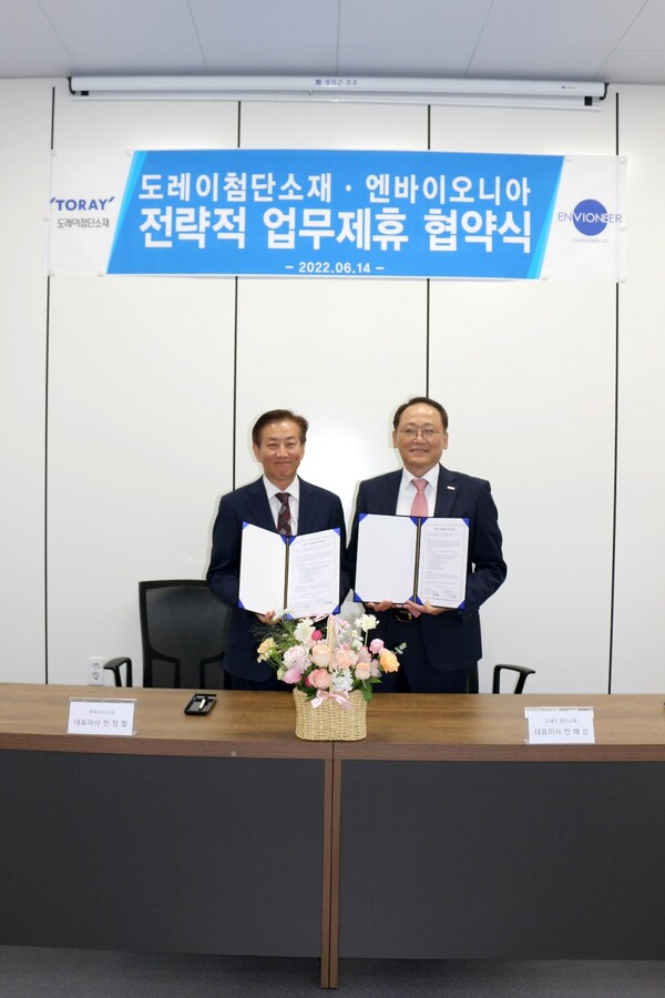 한정철 엔바이오니아 대표는 “첨단소재분야에서 뛰어난 기술력을 가진 도레이첨단소재와의 협력을 계기로 양사간 이상적인 협력모델을 창출해 미래소재시장에서의 입지를 강화해 나갈 것”이라고 전했다.
