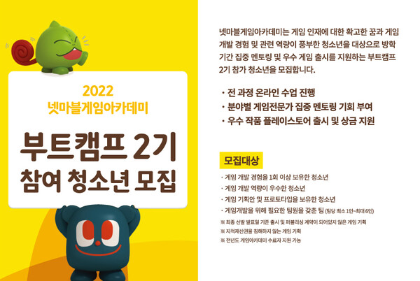넷마블문화재단(이사장 방준혁)은 게임아카데미 부트캠프 2기 참가자를 모집한다고 15일 밝혔다.