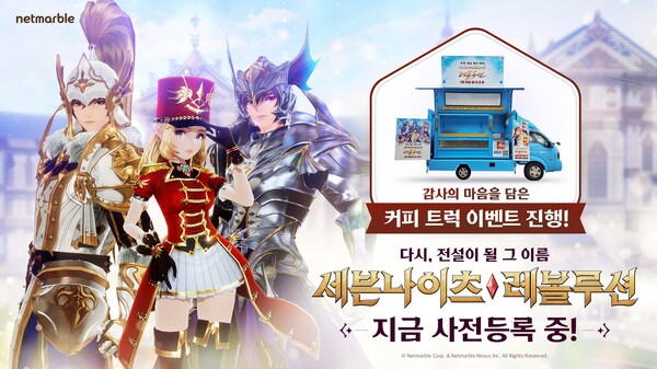 넷마블(대표 권영식, 도기욱)은 오픈월드 MMORPG '세븐나이츠 레볼루션'의 출시를 앞두고 이용자들을 위한 ‘커피 트럭’ 이벤트를 진행한다고 23일 밝혔다.
