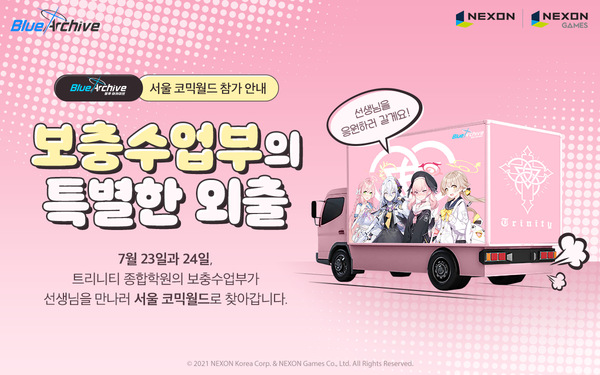 넥슨(대표 이정헌)은 7월 23일과 24일 일산 킨텍스에서 열리는 만화 종합 행사 ‘서울 코믹월드’에서 ‘블루 아카이브’ 첫 유저 행사를 연다.