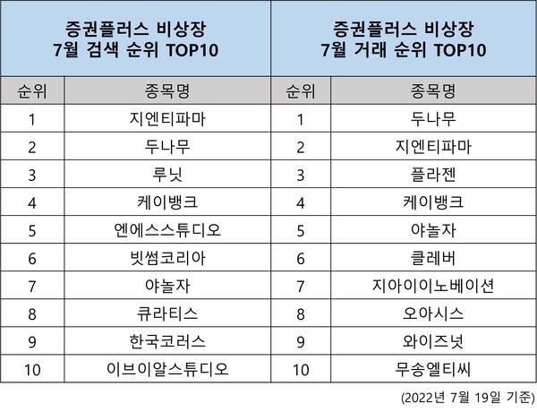 신약 개발 바이오 벤처기업 지엔티파마는 7월 19일 기준 증권플러스 비상장 검색 순위 1위, 거래 순위 2위를 기록하며 제약,바이오 주에 대한 투자자 관심을 입증했다.