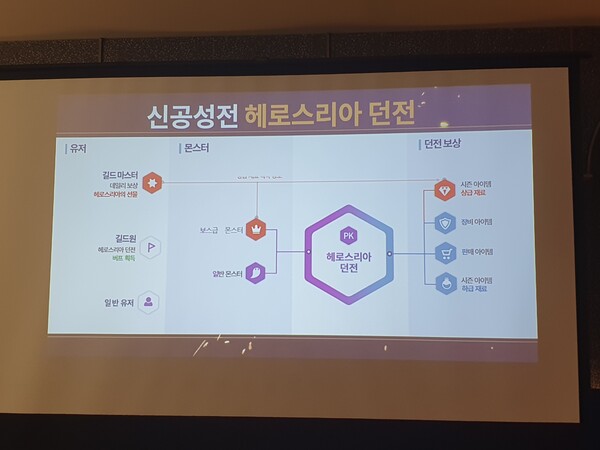 신공성전에서 승리한 길드는 '헤로스리아 버프'를 획득할 수 있다. 길드장은 '헤로스리아의 선물'을 매일 획득할 수 있다. 길드원은 공격및 방어 관련 버프를 획득할 수 있어 PvP에서 유리한 고지를 점할 수 있다.