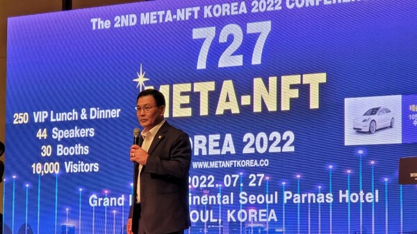 크립토아크 박재성 회장이 지난 27일 열린 727 메타 NFT 코리아 컨퍼런스에 참석하여 P2P 플랫폼 생태계에 대해 발표했다.