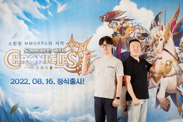 3일 진행한 서머너즈워: 크로니클(이하 크로니클) 기자 간담회에서는 이은재 총괄PD와 마성빈 사업실장이 얼굴을 비췄다. 이 PD는 "크로니클의 가장 자신있는 메인 콘텐츠는 MMO스러운 협동 콘텐츠"라며 태국 CBT 이후 레이드 던전과 같은 콘텐츠에 많은 공을 들였다고 밝혔다.