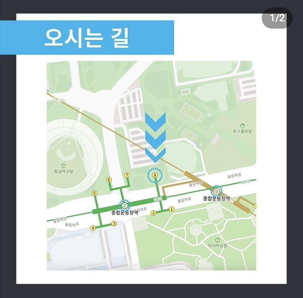 종합운동장 8번 출구에서 포켓몬 팝업 스토어까지 가는 방법을 정리해보았다. 해당 이미지는 8월 12일 행사 3일차 재방문 당시 촬영했다.
