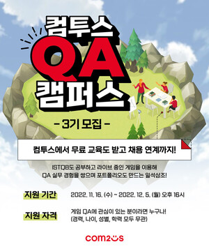 모집 분야는 아트 전직군, TA, 기획, 클라이언트 프로그래밍이다. 지원자는 오는 9월 25일 자정까지 컴투스 채용 홈페이지를 통해 온라인으로 지원할 수 있다.