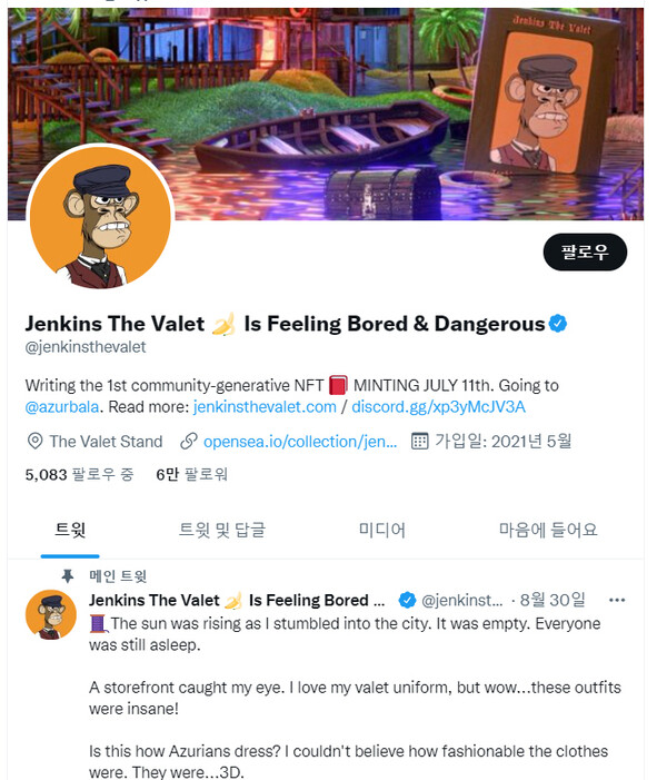 BAYC #1798번 홀더는 본인 소유의 NFT에 ‘관리인 젠킨스’라는 직업과 이름을 붙여주고 관리인의 입장에서 바라본 다른 원숭이 NFT들의 비밀 이야기를 트위터에 연재하기 시작했다.
