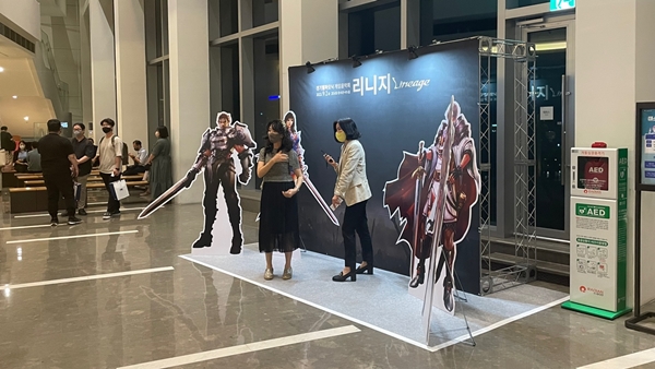 스크린 영상은 기사들이 칼을 들어오였다가 내려치는 장면으로 막을 내리는데요. 그와 동시에 음악도 모든 악기가 '꽝!'하고 끝나는 순간 리니지라는 게임의 절도와 무게감이 남다르다는 것을 느꼈습니다.