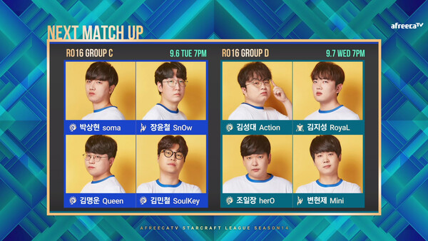 김성대(Z), 김지성(T), 조일장(Z), 변현제(P)가 출전하는 16강 D조 경기는 오는 7일 오후 7시부터 시작된다. 종족 밸런스가 잘 맞는 D조의 첫 경기는 와일드카드전을 통해 시드권을 획득한 김성대가 김지성과 대결을 펼친다. 두 선수 모두 기세가 좋아 승부를 예측하기 어려운 접전이 예상된다. 이어지는 경기에는 변현제와 조일장이 맞붙는다. ASL 경험이 풍부한 두 선수의 맞대결로 운영과 집중력 싸움이 승패를 가릴 것으로 보인다.