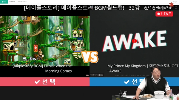 갈비찜 시식과 함께 강 디렉터는 앞서 공개한 메이플스토리 BGM 월드컵 콘텐츠를 시작했다. 자신이 마음에 드는 BGM을 감상하면서 편하게 시식하는 그의 모습은 정말 프로 방송인이라 불러도 손색이 없었다.