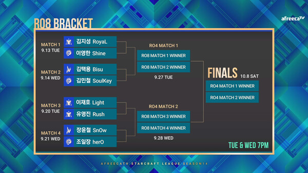 아프리카TV는 13일부터 ‘ASL 시즌14’ 8강 1주차 경기를 진행한다.
