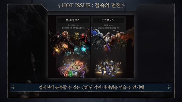 엔씨는 "마법서 및 기술서를 획득한 혈맹이 많았다. 결속의 던전은 시간 제한이 없기에 혈맹의 인원과 전투력 등을 고려해 몬스터를 사냥할 수 있고 강화된 희귀 등급의 아이템을 획득해 컬렉션을 완성할 수 있으니 꼭 참여하길 바란다"고 조언했다.
