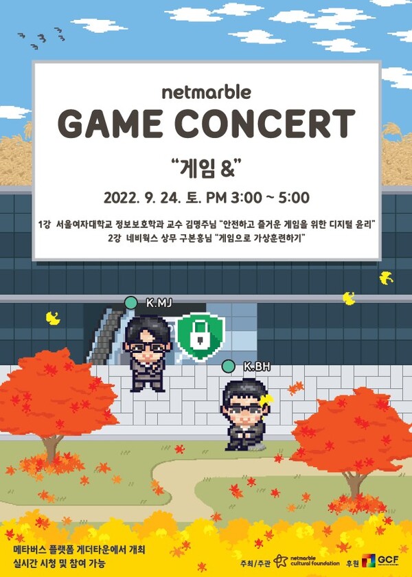 넷마블문화재단(이사장 방준혁)은 제 14회 넷마블 게임콘서트를 오는 9월 24일 오후 3시, 메타버스 플랫폼 ‘게더타운’에서 개최한다.