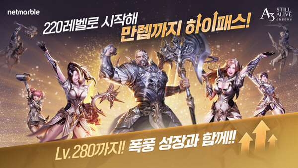 넷마블(대표 권영식, 도기욱)은 모바일 배틀로얄 MMORPG 'A3: 스틸얼라이브'에 대규모 업데이트를 실시했다고 30일 밝혔다. 신규 서버 '하이패스' 오픈을 비롯해 레벨 확장, 신규 지역 '헤이피', 신규 장비·강화 확장 등 다양한 콘텐츠를 새로 추가했다.