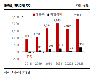 SK증권 이소중 애널리스트는 조이시티의 22년도 3분기 매출액은 전년비 16% 하락한 400 억원, 영업이익은 전년비 85% 하락한 6억원을 전망한다고 밝혔다.