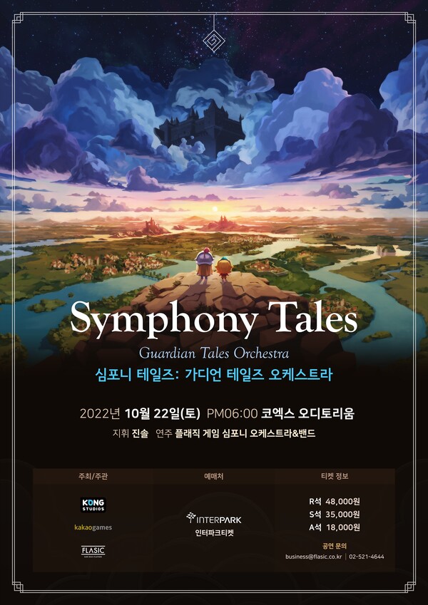 게임 음악 전문 플랫폼 기업 플래직(대표 진솔)이 콩스튜디오, 카카오게임즈와 공동으로 오는 10월 22일 오후 6시 코엑스 오디토리움에서 '심포니 테일즈: 가디언 테일즈 오케스트라'를 개최한다.