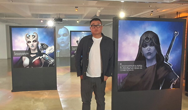 전시공간은 섹션1이 디지털 에셋이고, 섹션2는 드로잉이다. 역시 전시회는 그의 대표작 영화 ‘악녀’의 세계관에서 출발했다. 모두 여성 캐릭터만 다루고 있다.