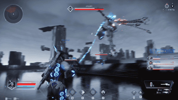 과제도 산더미다. 테스트 버전이라 '보이드 요격전'의 기믹 및 총기 밸런스가 불안정했고 종료 시 나타나는 결과표도 아직 구현되지 않았다. 파티원을 초대하면 파티가 결정됐는지도 알기 어려워 채팅으로 일일이 확인했다. 프레임 방어를 위한 최적화, 사격으로 느껴지는 쾌감, 적중했을 때의 손맛, 직관성이 떨어지는 대미지 폰트, 그래플링 훅 이후 부자연스럽게 시전되는 자동 점프 등 다듬어야 할 요소가 많다.