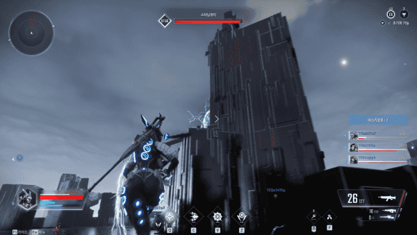스킬과 사격의 중요도를 비교한다면 사격 쪽이 더 높았다. 테스트 버전이라 그런지 적재적소에 맞춰 스킬을 사용해도 효율성이 떨어졌다. 예를 들어 방패로 파티원을 지키는 스킬은 보스 기술의 위력이 너무 강한 탓에 종잇장처럼 파괴됐다. 이동 스킬도 보스 공격 회피 용도로 사용했는데 보스의 방향 전환 속도가 너무 빨라서 결국 맞았다. 밸런스가 조정된다면 한층 재미있는 콘텐츠가 될 것이다.