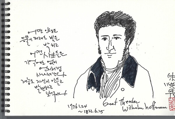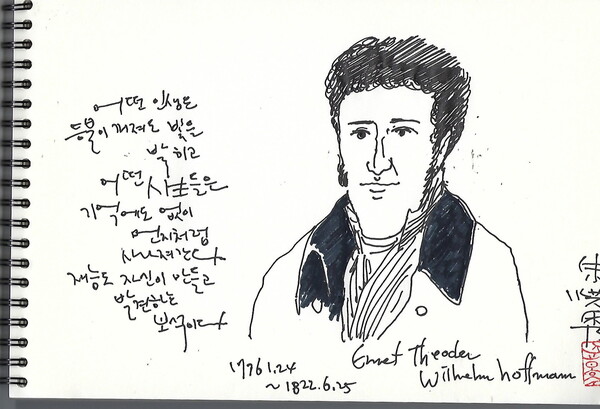 특히 재미있는 건 호프만이 당시 유명한 판사였다는 사실이고, 낮에는 재판하며 저녁에는 선술집에서 문학과 철학, 낭만에 대해 지인들과 논제를 주고받았던 자신의 작품을 소설로 완성해갔던 소설가였다는 점이다.