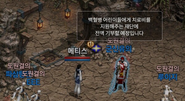 리니지M 혈맹이 게임 이벤트로 얻은 상금을 백혈병 어린이 돕기에 선뜻 기부해 화제다.