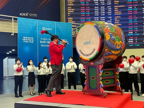 저스템(대표이사 임영진)이 28일 한국거래소에서 열린 상장기념식을 마치고 코스닥 시장에 성공적으로 입성했다.
