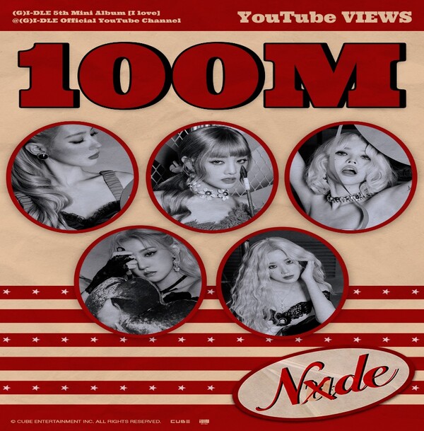 큐브엔터테인먼트(182360, 이하 ‘큐브엔터’)가 소속 걸그룹 (여자)아이들(미연, 민니, 소연, 우기, 슈화) (여자)아이들의 ‘Nxde’(누드) 뮤직비디오가 조회수 1억 뷰를 돌파했다고 밝혔다.