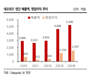 SK증권의 이소중 애널리스트는 네오위즈가 7 월부터 웹보드 게임 규제 완화로 인한 게임 매출이 하반기부터 확대, 이러한 실적을 바탕으로 2023년의 신작인 ‘P의 거짓’ 에 대한 기대 성과가 선반영 될 것으로 판단한다고 했다.