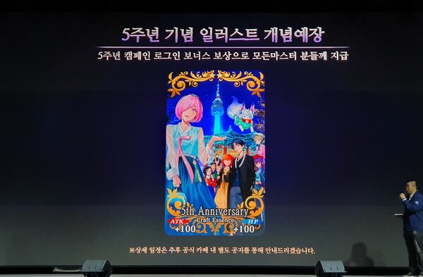 넷마블은 페그오 서비스 5주년을 맞아 유저들을 사옥에 초청해 즐거운 시간을 보냈다. 행사 패널로 스트리머 시나맨과 헤티, 아나운서 고재영, 차보경이 출연했다. 5주년 기념 업데이트 로드맵 발표와 함께 유저들과 진행하는 다양한 레크레이션 시간을 가졌다.