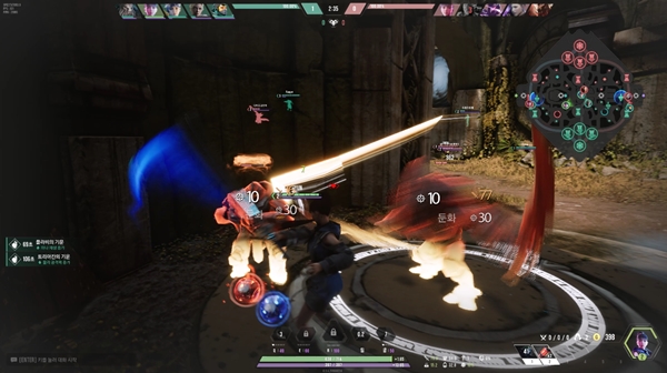 게임 플레이 방식은 사이퍼즈나 오버워치와 비슷하다. MOBA보다는 FPS 장르에 더 가깝다. 시점이 제한적이라는 의미다. 여러 지역을 직접 확인할 수 없는 3D MOBA의 한계다. 미니맵으로 모든 상황을 파악해야 한다. 그만큼 팀원과의 소통이 더욱더 중요하다. 마우스 휠이나 F 버튼으로 핑을 찍을 수 있으니 적극 활용해야 한다.