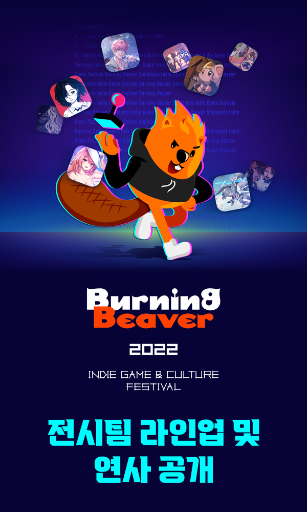 스마일게이트는 오는 12월 16일 개막하는 인디게임 페스티벌 ‘버닝비버 2022’에서 강연에 나설 연사들과 전시 참여팀을 홈페이지에 공개했다.