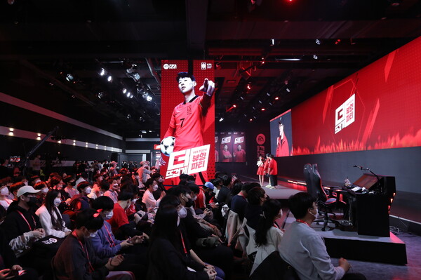 넥슨은 24일 2022 FIFA 카타르 월드컵 조별예선 H조 대한민국과 우루과이전을 맞아 ‘FIFA 온라인 4’와 ‘FIFA 모바일’ 이용자를 초청해 오프라인으로 응원전을 펼쳤다. ‘FIFA 온라인 4’ 뷰잉 파티는 200여 명이 방문한 가운데 잠실 비타500 콜로세움에서 진행됐다. 현장에는 월드컵 응원 열기를 더하는 축하공연, 포토존, 체험존, 먹거리, 게임쿠폰 등을 준비했다.