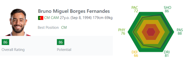 브루노 페르난데스(2018년 82 → 현재 86)
