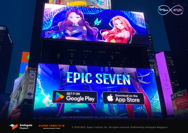 스마일게이트 메가포트(대표 장인아)는 모바일 RPG ‘에픽세븐’과 K-팝 그룹 ‘에스파’의 컬래버레이션을 기념해 뉴욕 타임스퀘어 등 국내외 핫스팟에 대형 옥외 광고를 공개했다고 2일 밝혔다.