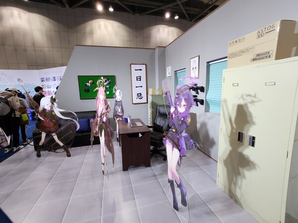 부스에서 가장 눈에 띄는 것은 게임 속 캐릭터 아크릴 등신대다. 각 전시관은 흥신소 68과 게임개발부 일러스트를 그대로 구현했다. 흥신소 68에는 리쿠하치마 아루, 오니카타 카요코, 이구사 하루카, 아사기 무츠키의 등신대를 볼 수 있다. 본래 아크릴 피규어는 책상에 올려두는 작은 크기만 봐왔는데 이렇게 거대한 크기로 보니까 남달랐다. 게임 속에 들어온 느낌이랄까.