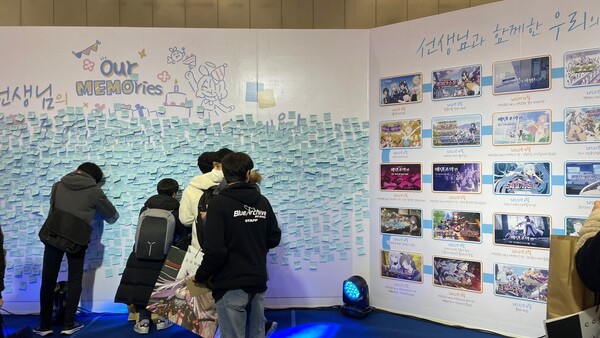 부스 마지막 섹션에는 포스트잇으로 메모를 남길 수 있었다. 주로 블루 아카이브와 자신이 좋아하는 캐릭터를 응원하거나 함께 온 지인들과 이름을 기록하는 내용이었다. 부스를 모두 감상하면 대형 캐릭터 쇼핑백, 포토카드 3종 및 스틸케이스, 마스킹테이프 등 AGF 특별 굿즈를 선물로 받는다.