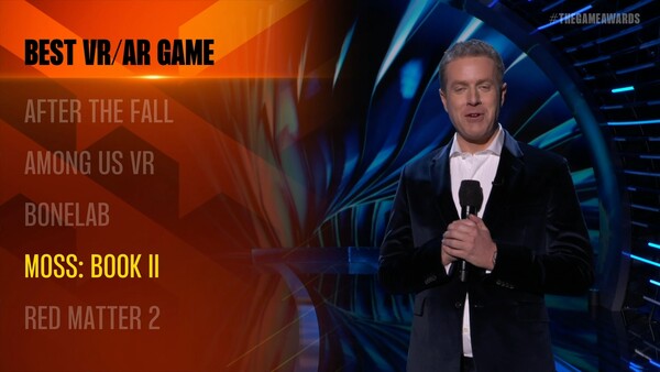 최고의 VR/AR 게임은 모스: 북2가 호명됐다. 이 게임은 플레이스테이션 VR 전용으로 전작의 주인공 퀼이 아케인의 무자비한 통치를 끝내고 모스에 평화를 가져오기 위한 여정을 담았다.