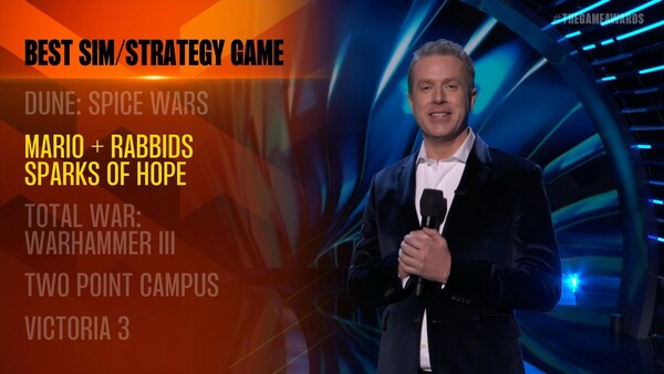 마리오·래비드 반짝이는 희망이 최고의 전략 게임으로 선정됐다. 이 게임은 마리오 엑스컴이라고 불리며 은/엄폐와 다양한 능력을 활용해 전투를 유리하게 이끌어 나가는 전략적인 요소를 담고 있다.