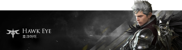 호크아이는 기계 활과 특수 화살을 사용하는 클래스로 전투 상태가 유지되는 동안 호크 게이지가 자동 수급되는 방식으로 기획되었습니다.