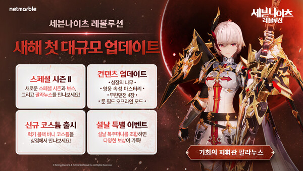 넷마블(대표 권영식, 도기욱)은 오픈월드 MMORPG 세븐나이츠 레볼루션에 신규 스페셜 영웅 ‘기회의 지휘관 팔라누스’를 추가하는 등 업데이트를 실시했다고 19일 밝혔다.