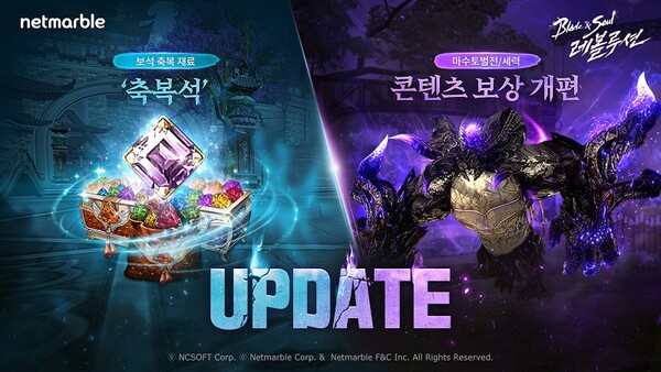 넷마블(대표 권영식, 도기욱)은 모바일 MMORPG '블레이드 & 소울 레볼루션’에 신규 콘텐츠 ‘축복석’을 추가하는 등 업데이트를 실시했다고 27일 밝혔다.