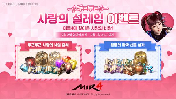 위메이드 모바일 MMORPG '미르4'가 오늘 ‘두근두근 사랑의 설레임’ 이벤트를 시작했다.
