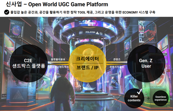 또한 오픈월드 UGC(사용자 제작 콘텐츠) 플랫폼을 연내 출시할 예정이다. 모바일 중심의 오픈월드 3D 공간에서 유저가 만든 게임을 즐길 수 있는 플랫폼이다. 주요 타깃은 Z세대로 1인, 혹은 소수의 크리에이터와 개발자가 수익을 얻을 수 있는 C2E 구조를 제공한다. 김 대표는 "UGC 플랫폼은 앞으로 크게 성장할 수 있는 사업이다. 미래를 보고 투자하겠다"라며 "글로벌 게임사와 JV(조인트벤처)를 설립 및 분사해 자회사로 경영할 것"이라고 말했다.