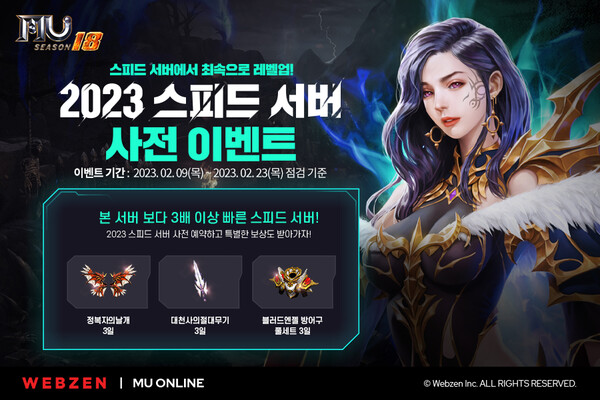 웹젠(대표 김태영)은 PC MMORPG ‘뮤 온라인’에서 올해 첫 ‘스피드 서버’ 사전 예약 이벤트를 진행한다.