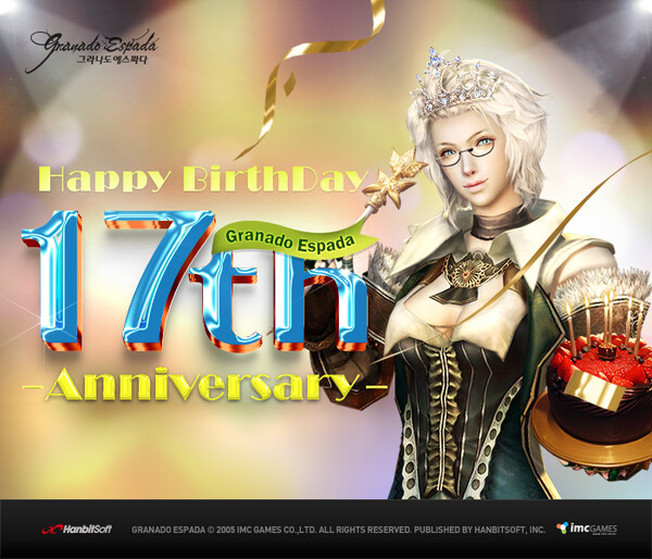 한빛소프트는 PC 온라인 MMORPG '그라나도 에스파다' 17주년을 맞아 유저들에게 감사하는 마음을 담은 다양한 보상 이벤트를 마련했다.