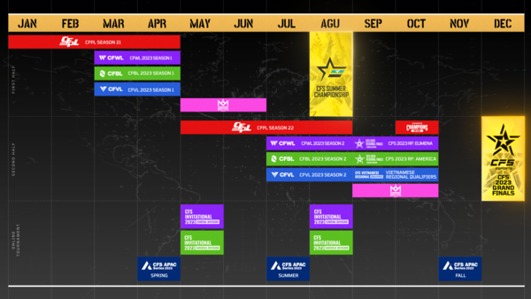 새로운 대회도 추가했다. 지난해 4년 만에 국제 대회에 복귀한 필리핀 팀들이 국제 대회 참가 자격을 공식적으로 획득할 수 있는 CFS PH 마스터즈를 신설, 이를 통해 CFS 썸머 챔피언십과 CFS 그랜드 파이널 참가팀을 선발한다.