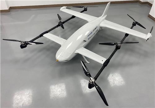 ▲전시:기체명 : LC62-50B, 목적 : 감시/정찰/항공측량/배송, 이륙중량 : 50 kg, 순항속도 : 140km/h이상, 비행거리 : 50km, 비행시간 : 30분+, 탑재중량 : 3kg이상, 동력원 :LiPo배터리
